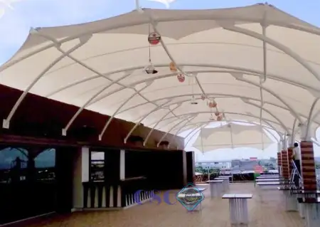 canopy kafe, canopy kolam renang, tensile structure, harga canopy membrane per m2, kontraktor canopy terpercaya.